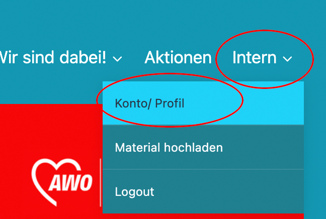 Wieder zurück und oben recht auf “Intern” und dann auf den Menüpunkt “Konto/ Profil”