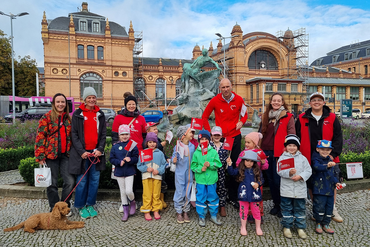 Am 15.09. waren vier Kolleg*innen des Landesverbands MV + Bürohund Waldi, mit einer Kindergruppe der AWO Kita Leuchtturm, am Grunthalplatz in Schwerin unterwegs – mitten in der Stadt und mitten im Leben.