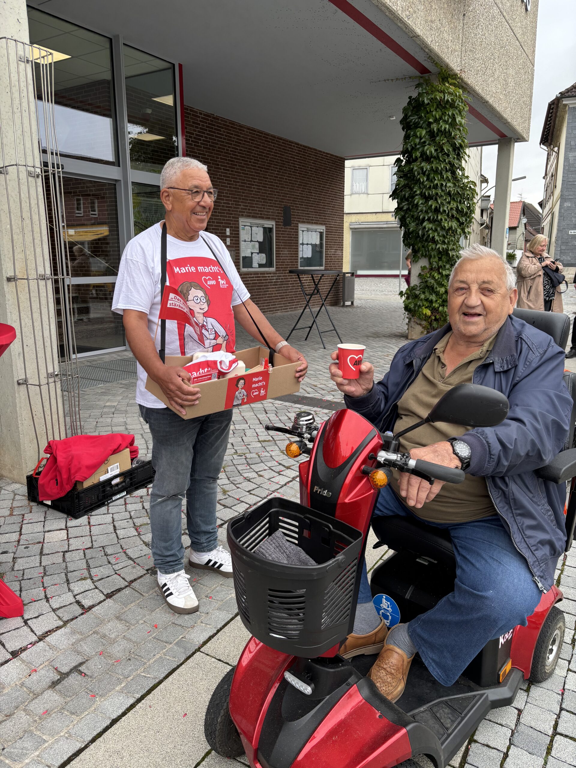 Der AWO-Ortsverein Schöppenstedt hat am Freitag, 5. September 2025 in der Zeit von 9-11 Uhr mit einem “Bauchladen” kleine AWO-Giveaways verteilt und ist mit interessierten Bürger*innen bei einem Kaffee ins Gespräch kommen.