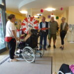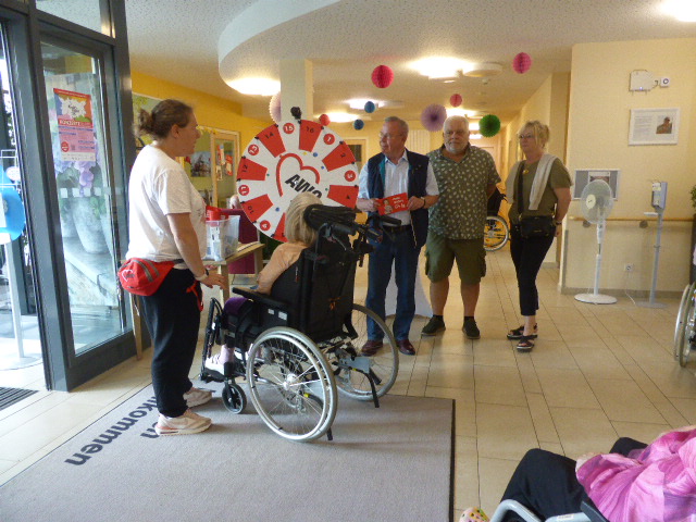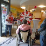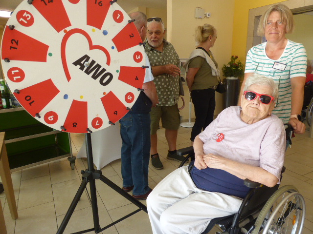 Die Beteiligung in Wolfenbüttel am Aktionstag „Marie macht´s“ war recht erfolgreich. Im Foyer des AWO-Wohn- und Pflegeheims Im Kamp haben das Heim sowie der Ortsverein zusammen das Glücksrad aufgebaut und Getränke angeboten und das Ganze mit verbalen Infos sowie dem großen „Care-Tablet“, auf dem die Lebensgeschichte von Marie Juchacz zu lesen war, gekoppelt. Bewohner*innen, Besucher*innen und Mitarbeitende kamen mit den OV-Vertreter*innen ins Gespräch und wir haben die Grundwerte sowie die Angebotsunterschiede zu anderen Anbietern sozialer Dienstleistungen umfänglich erläutern und austauschen können. Es sind etwa 60 verschiedene Personen erreicht worden (wobei die Bewohnenden außerdem z. T. mehrfach am Info-Tisch waren und das Glücksrad bedient habe😉) Es war gute Stimmung und häufig waren die Sätze zu hören „Das habe ich ja gar nicht gewusst!“ oder „Deshalb fühlen sich meine Angehörigen hier so wohl!“ und auch „Ich arbeite gern hier!“ – Wir als Akteure fanden die Aktion sehr gelungen und es hat uns viel Spaß gemacht!