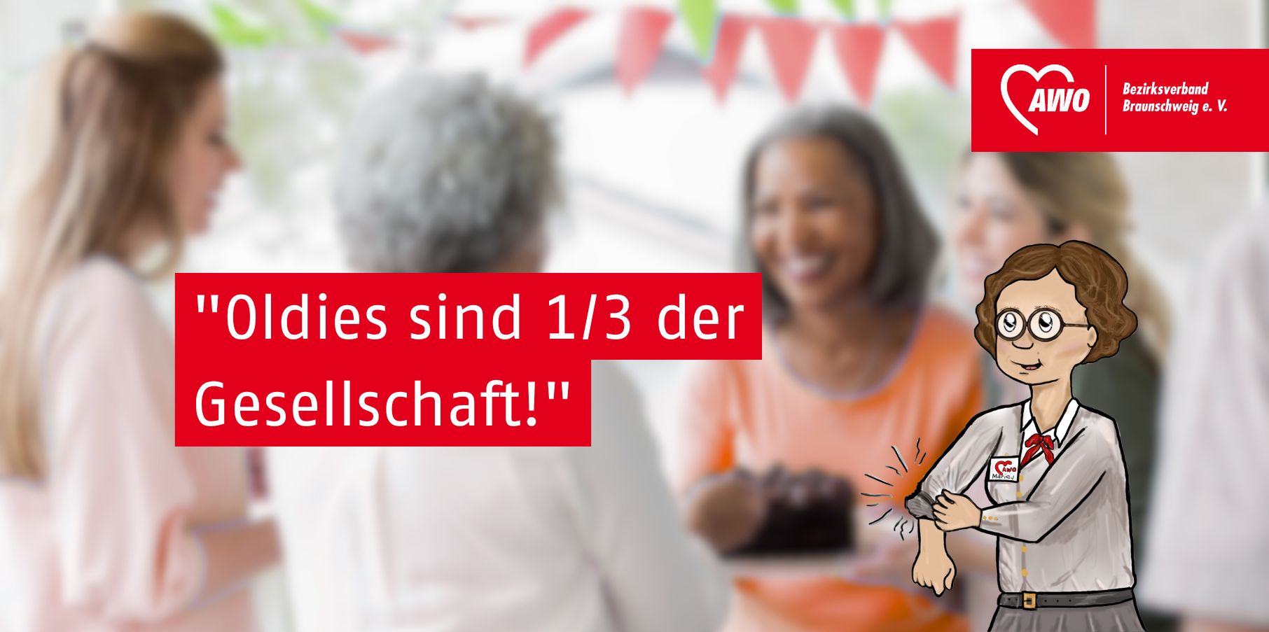 “Oldies sind 1/3 der Gesellschaft!” Der AWO-Ortsverein Wolfenbüttel organisiert einen Mitmach- und Infostand im Eingangsbereich des AWO-Wohn- und Pflegeheimes Im Kamp. Route auf Google Maps