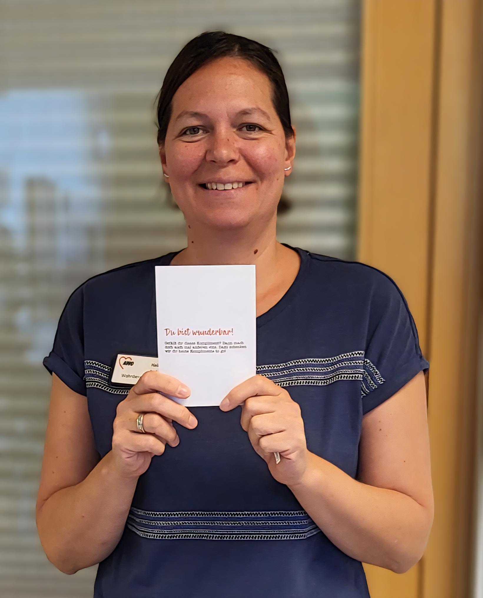 Zum Aktionstag „Marie macht’s“👍hat sich das Team der Sozialen Betreuung des AWO-Wohn- und Pflegeheims Querum etwas Besonderes einfallen lassen: Für Mitarbeiterinnen, Mitarbeiter und Angehörige wurden liebevoll gestaltete Komplimente-Karten gedruckt und verteilt.